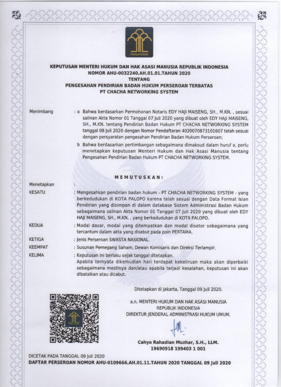 Ide pendirian PT. Chacha Networking System dimulai sejak tahun 2010, ketika kebutuhan tingkat penggunan internet di Kota Palopo mulai berkembang, maka kami bersepakat untuk mendirikan sebuah perusahaan IT untuk memenuhi kebutuhan tersebut.
